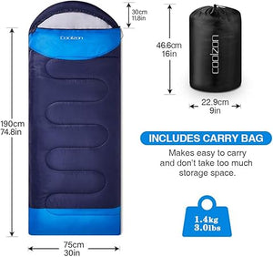 ADVANCED MATERIALS- This sleeping bag is durable,high quality fluffy cotton fabricis very soft ,the highest grade of 100% polyester fiber is used as the surface material,and hollow cotton is used as the fillerto ensure light weight,durability and easy to carry,it can help you get rid of the hard work,Hike and a hard day,bring you a relaxing warm sleep.