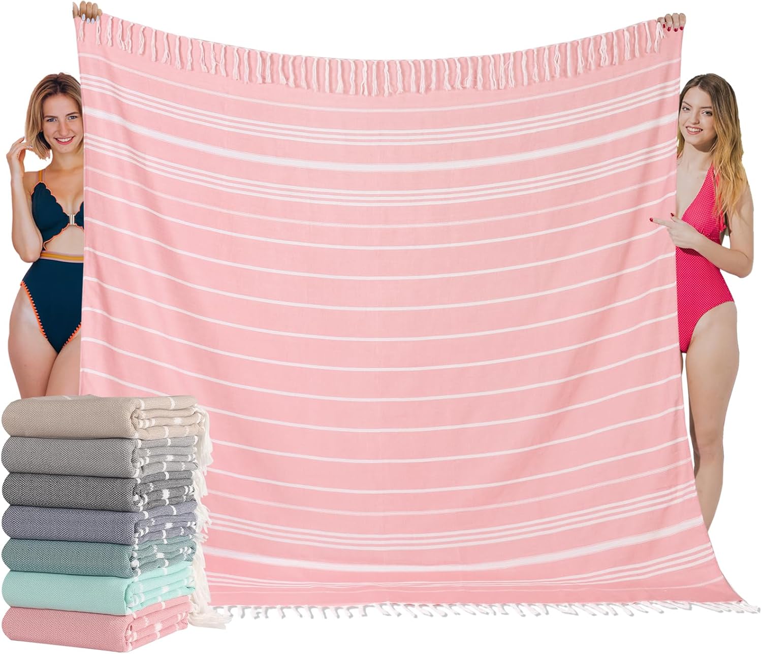SAND FREE:Featuring advanced sand resistant fabric,this turkish beach towel blanket prevents sand from sticking to its surface,making it easy to clean just shake it off with a quick flick.Enjoy a cleaner,more pleasant beach outing without the annoyance of sand clinging to your towel