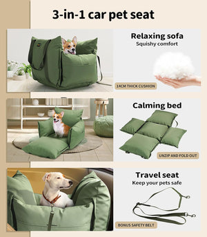 ⭐Versatile Travel Solution: The 3-In-1 Dog Car Booster Seat is a multi-functional accessory, serving as a secure dog car seat, a cozy sofa and a calming pet bed, providing ultimate convenience for your furry friend.Dimension: 56cm x 52cm x 46cm.