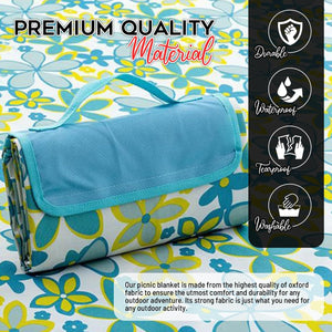 Durability: Built to Last 🔨💪 Our picnic blanket is built with durability in mind. The blanket is reinforced with a waterproof base, making it perfect for any outdoor activity. It is also made with high-quality materials that are resistant to wear and tear. So you can be sure that your picnic blanket will last for many years.