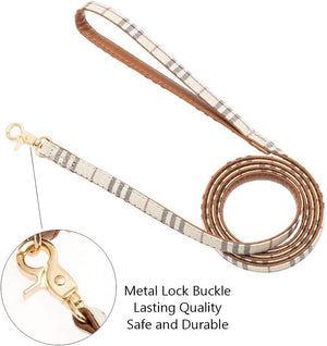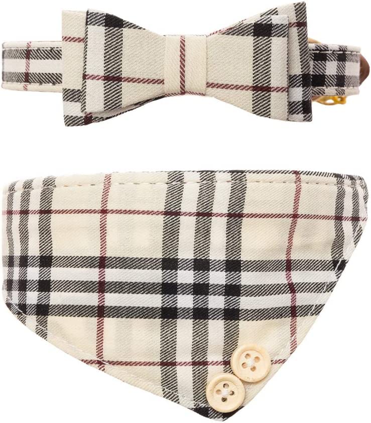 Discover the perfect accessory for your small dog or cat with this Plaid Dog Collar and Leash Set The set includes three adjustable leather collars, each featuring a cute bow tie and bandana necktie embellishment, as well as a bell for added visibility and safety during outdoor walks. The soft cotton material ensures maximum comfort for your pet, while the buckle closure allows for easy adjustment to fit a range of sizes from small to x-small. Suitable for adult cats and dogs, these collars are designed to be hand washed or machine washed on a gentle cycle, and air dried to maintain their quality. With three collars included in each set, this Plaid Dog Collar and Leash Set is a great value for any pet owner.
