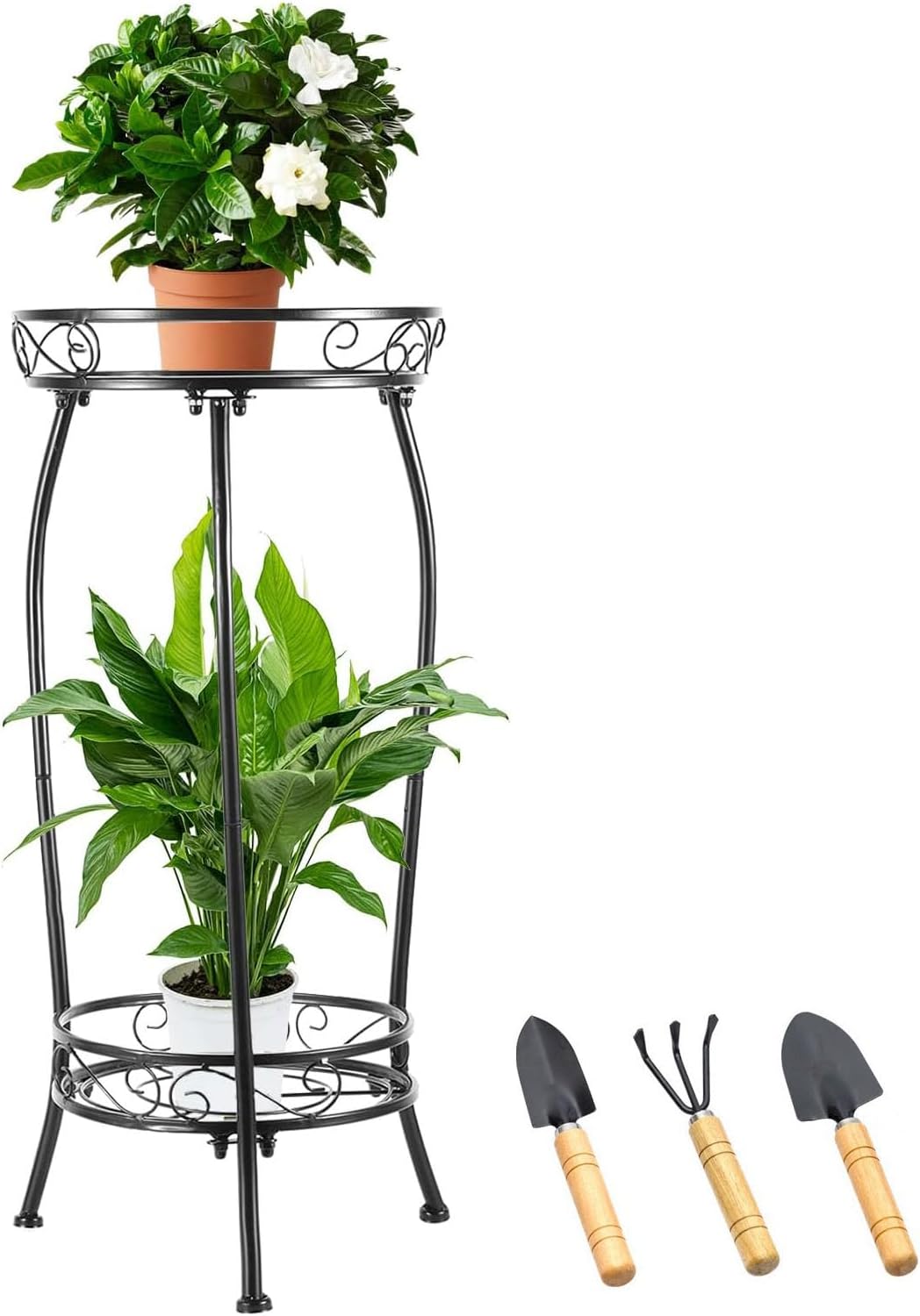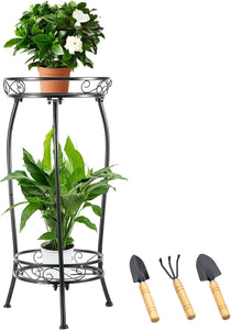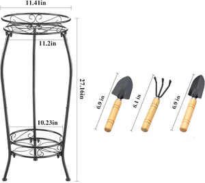 【Proper Height】The plant stand outdoor is about 27 inches tall, high enough to prevent critters from damaging your plants and can hold pots up to 11 inches. Easy to assemble, the plant table can be used to display your favorite houseplants, flowers, ferns, succulents, etc. in almost any room, sun porch and deck, garden, pathway, etc.The plant shelf set comes with 3 gardening gadgets for easy daily care of your plants.