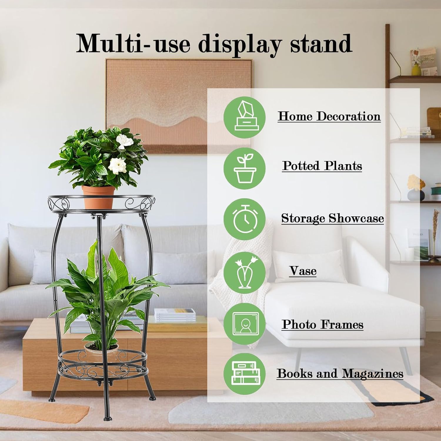 【Multifunctional Plant Holder】The plant stand indoor is the good plant holder for displaying your smaller plants and flowers without taking up a large amount of space. Not only can you use it to store magazines and books in the living room, but also you can use it as a shelf in the bathroom to decorate dull spaces.