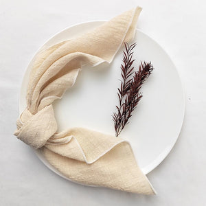 【Material】Natural cotton gauze napkins. The edges are carefully stitched. Simple but elegant design, airy to touch, absorbent and reusable, not easy to shrink or fade. This napkin is soft enough to fold into various shapes.