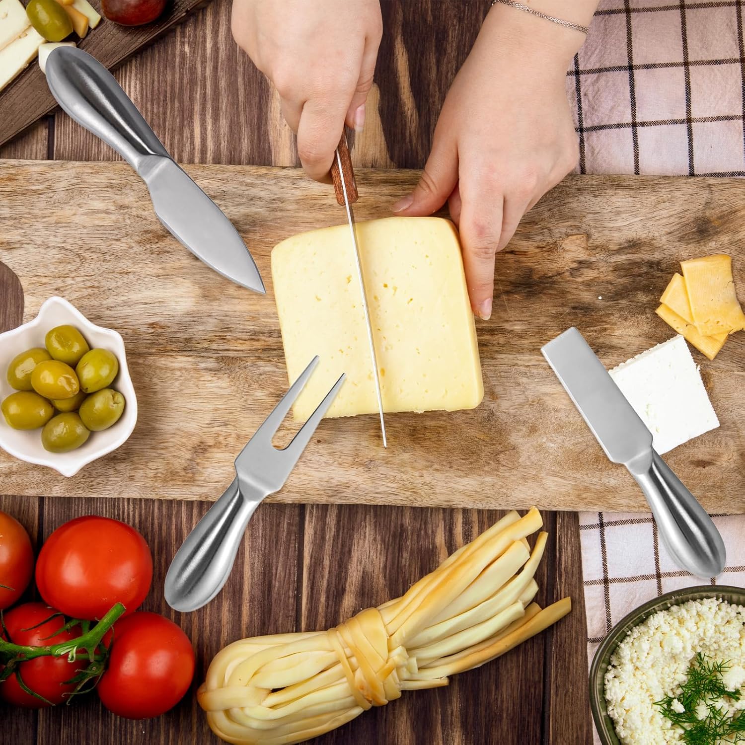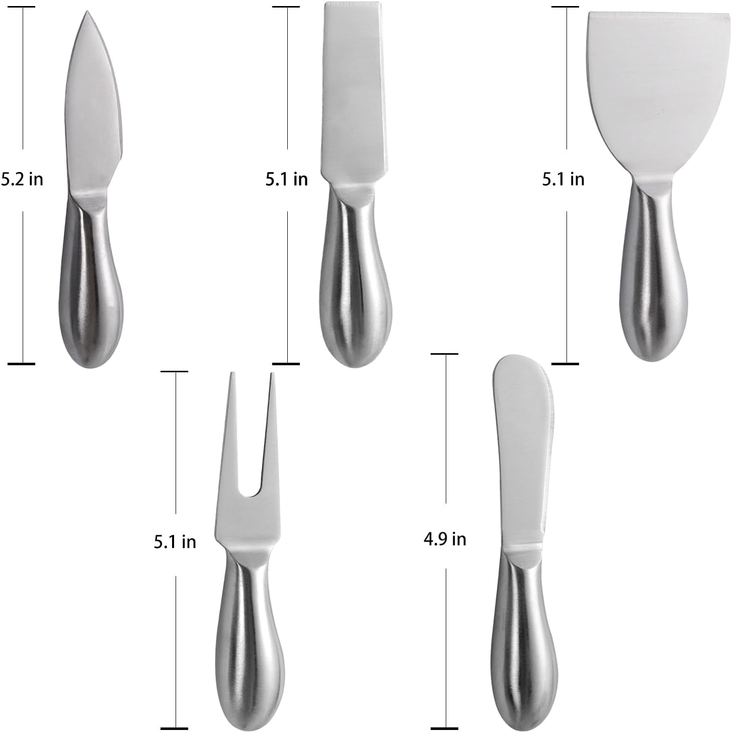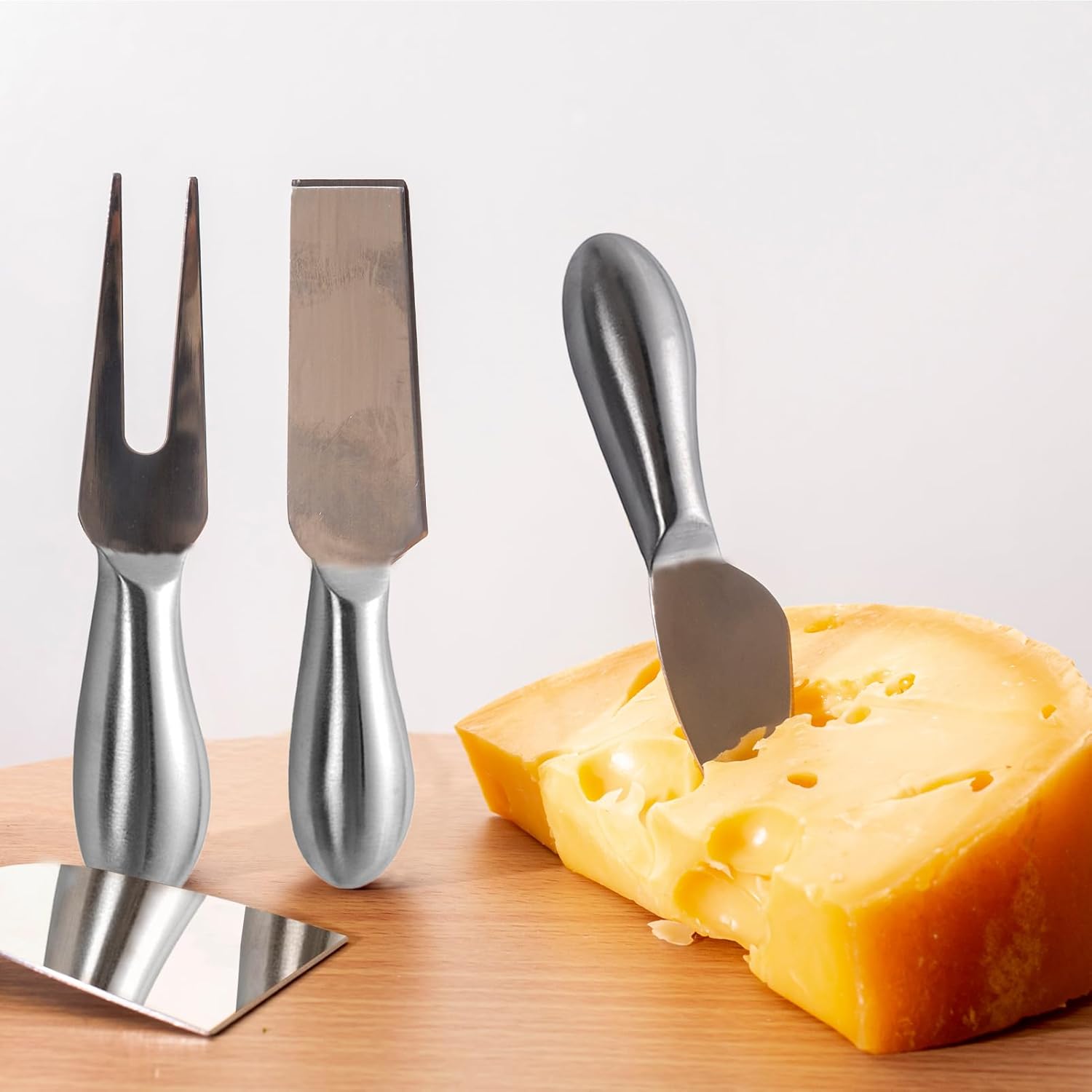 Premium Quality Stainless Steel: Crafted from high-quality stainless steel, these cheese board accessories are lightweight, well-balanced, and durable. Their ergonomic shape ensures a comfortable grip, providing an effortless serving experience.