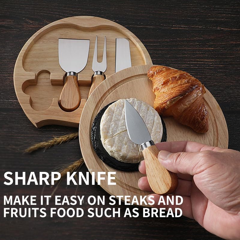 Cheese Knives List: This Cheese Board Set Comes With 4 Pcs Cheese Knives Concealed In The Slide-Out Storage Tray, Comprised Of Stainless Steel Cutlery.