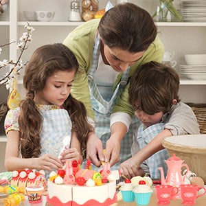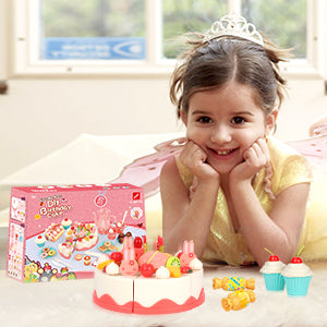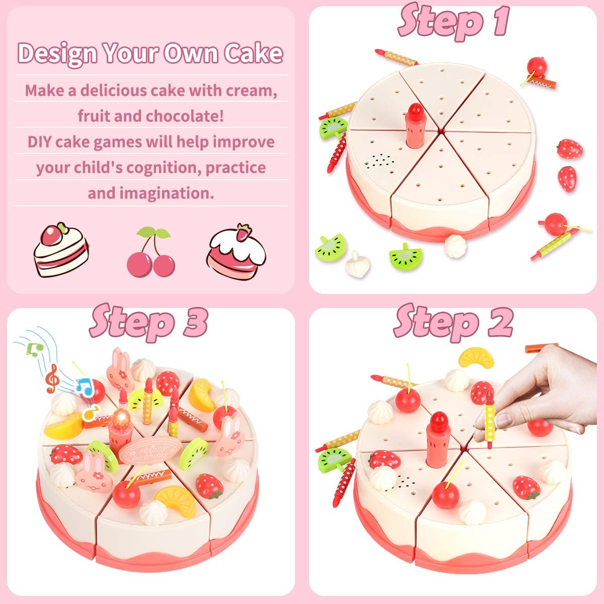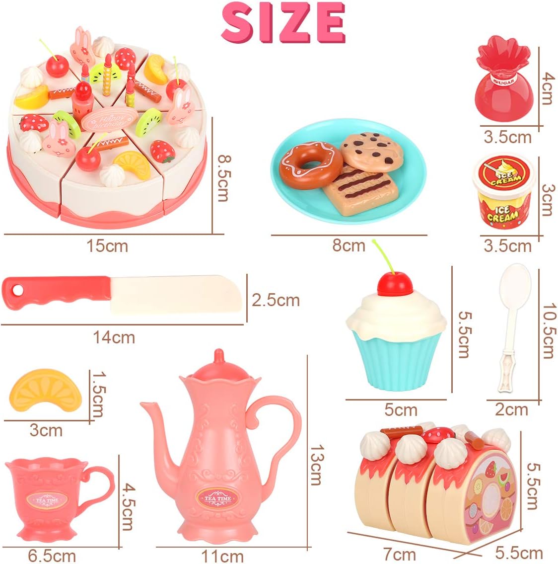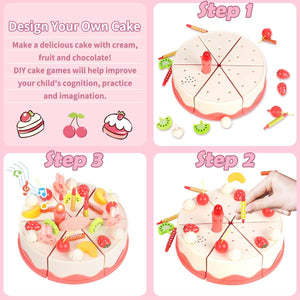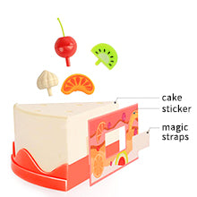 [Develop Skills]The pretend play cake set helps younger children identify the various food. This colorful item help children distinguish different colors.Cutting and the ability to stick cake together allows for endless fun and helps kids build motor skills and hand-eye coordination.
