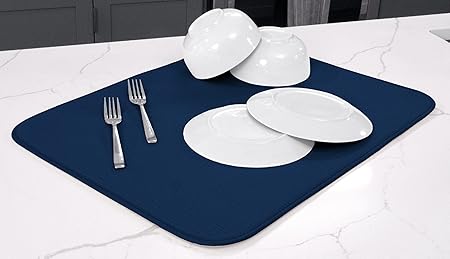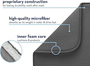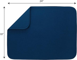 Microfiber Dish Dry Mat XL measuring 18 in. x 24 in.; kitchen mat for countertop absorbs up to 4 times its weight in water to keep your countertop dry, unlike a silicone dish drying mat