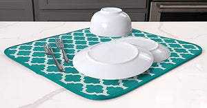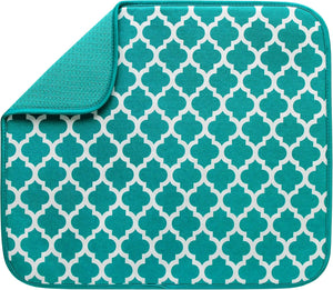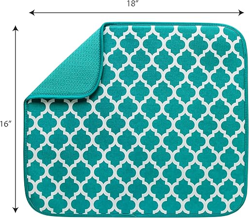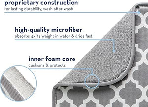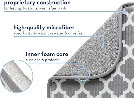 Absorbs 4x its weight in waterCushions dishes & stemwareMachine washableReversible dish matFoldable for easy storage