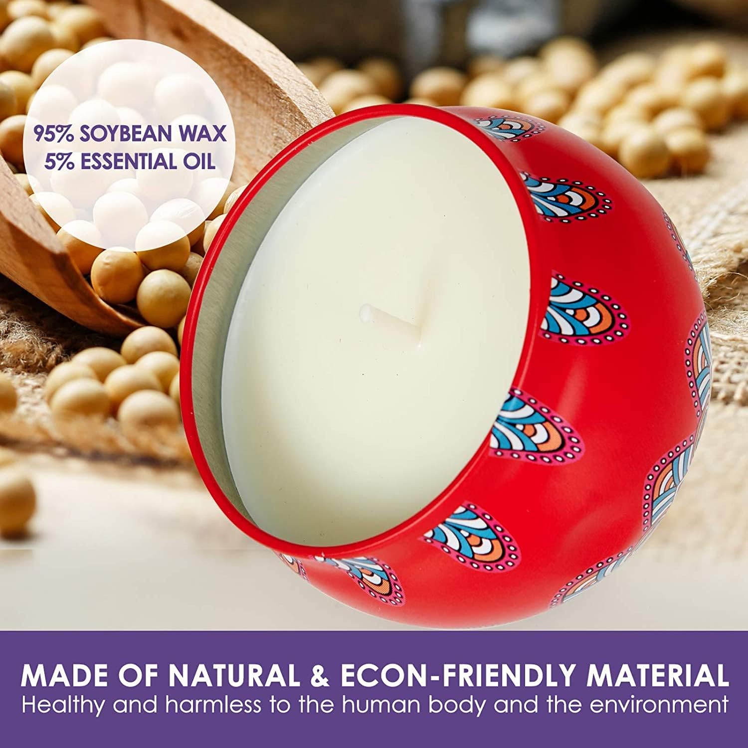 【Natural & Eco-friendly Ingredients】: Made up with 100% natural soy wax, natural plant essential oil and cotton woven lead-free wicks. No smoke when burning, no harm to people and pets.Trimming the wicks to help evenly burning and prolong burning time, every candle burning time approach 15-20h.