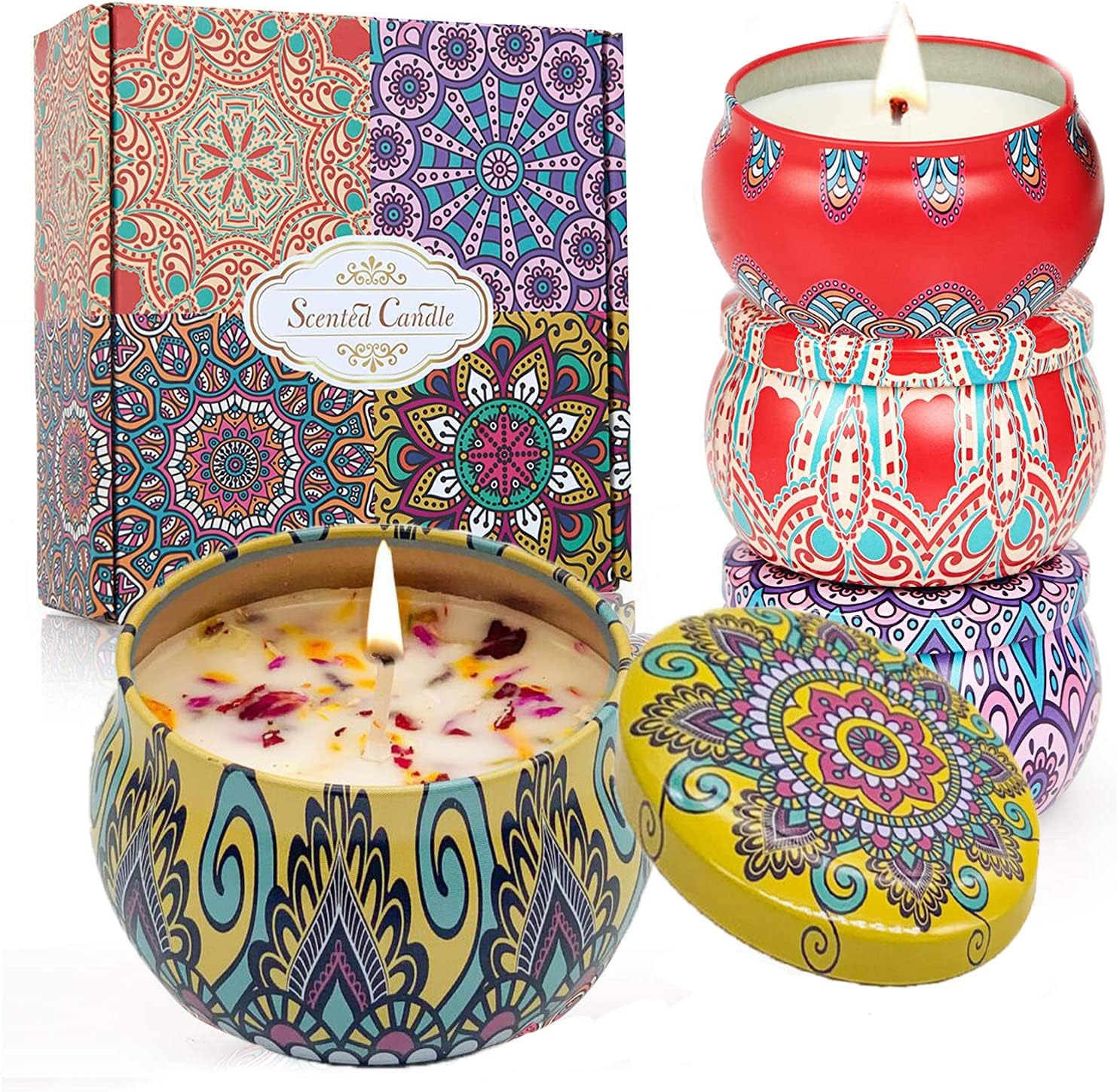 【BEAUTIFULLY CRAFTED GIFT BOX】Beautifully presented in a set of 4 candles gift set. Perfect gift for women, family, friends, and candle lovers. The best choice for a birthday gift, Mother’s Day etc. A perfect gift for Birthday, Mother & Father’s Day, Weddings, Valentine's Day, Christmas, Anniversaries and other special days.