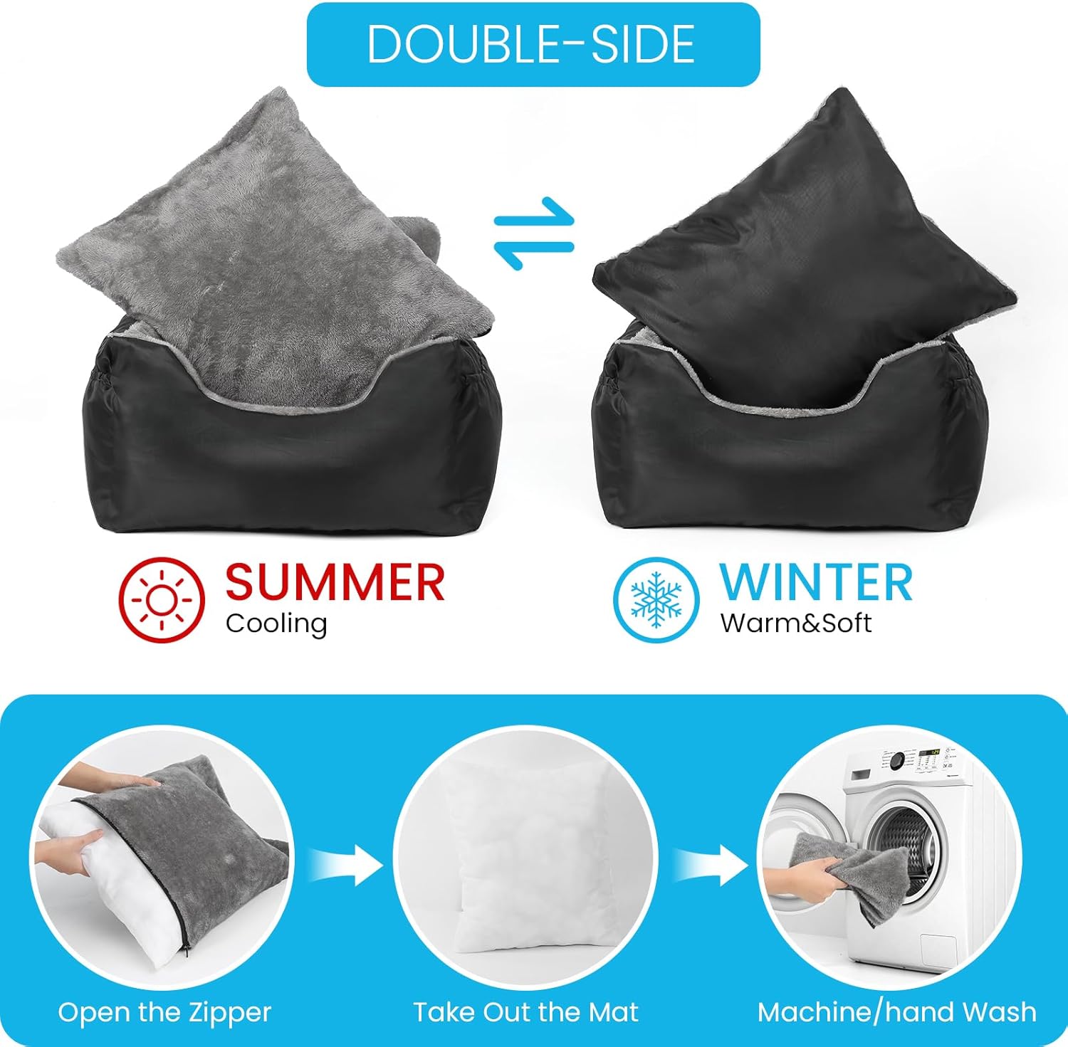 All-Season Comfort - The pillow cushion of Sicilaien dog booster seat is specially designed with two different surfaces that is suitable for different seasons. One side features warm and cozy plush, perfect for those chilly winter days. Flip over to the other side, which is made of cooling fabric, ideal for hot summer. No matter the weather, your dog will be snug and comfortable in their dog car seat.
