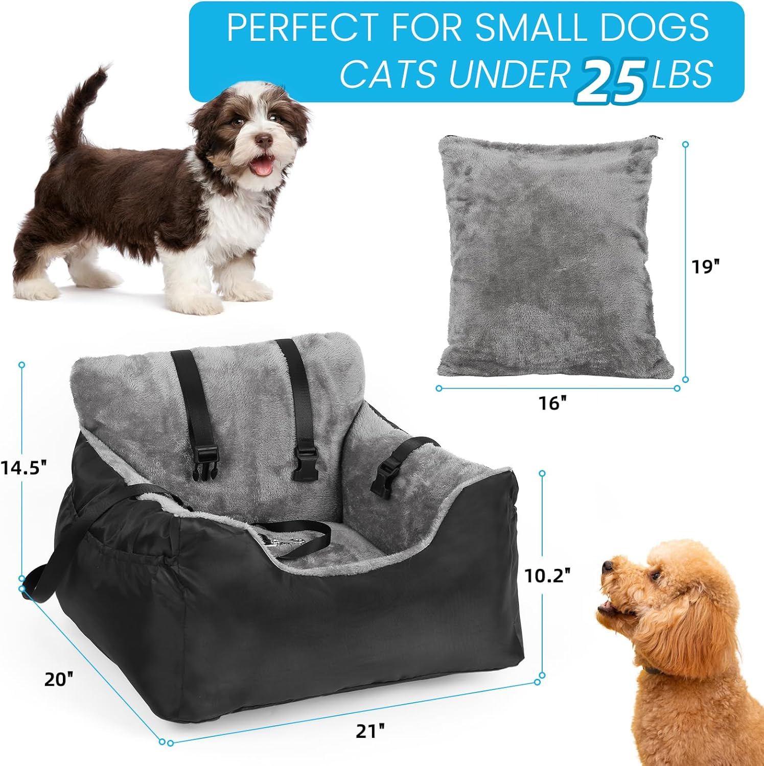 Small Dog Car Seat - With dimensions of 20''x 21''x 10.2'', this small dog booster seat is perfect for small dogs weighing under 25 lbs. Whether you're driving a car, pickup, offroader, or SUV, this dog car seat fits them all.
