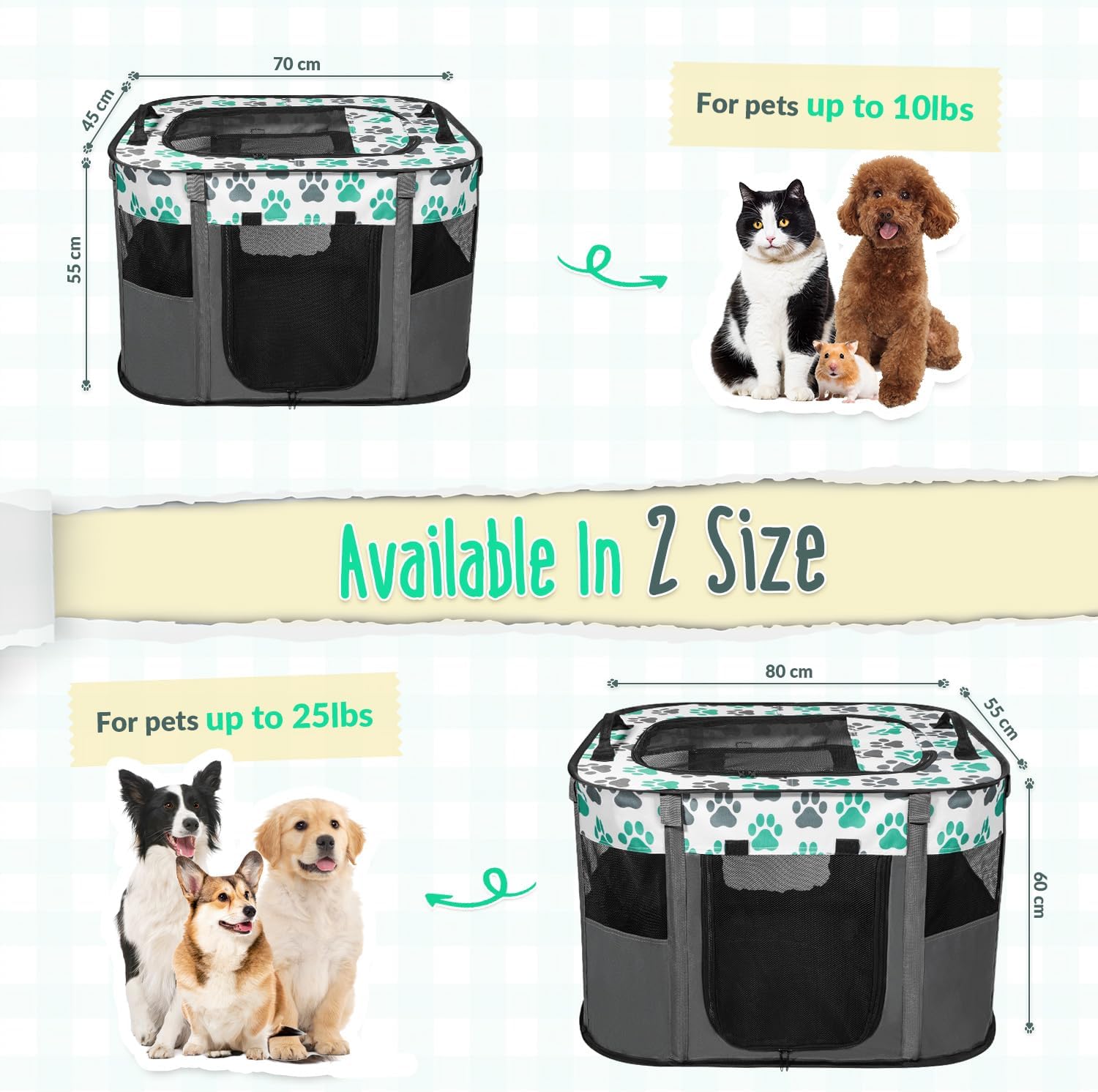 New Large Size Design --- The square-shaped design provides pets with ample room to move around. The dimensions are 31.5 x 23.6 x 21.7 inches, It can accommodate small pet daily necessities like bed , toys, litter box and bowl etc. The breathable mesh design ensures excellent air circulation.