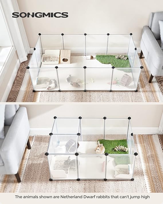 Run, play, exercise and have fun: customize a transparent pen for your active and naturally busy tiny furry ones, give her a happy and healthy playtime with our (10.5 square feet area, 17.7” high) pet Playpen, an ideal habitat for guinea pigs, rabbits, or hamsters