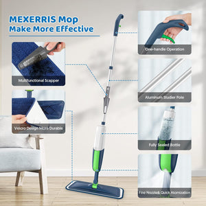 Additional Scraper with Comb & Hanging Up Design- The microfiber spray flat mop coming with the multi-function scraper, you can press water onto the spray mop pads, remove dirt & stains on the floor / tiles. The scrubber got 4 different sides to it, a rubber portion in middle, a flat portion & little teeth on the side for different cleaning task. Floor mop has a cushion handle so you can just put it up on your wall. It doesn't take up any space.