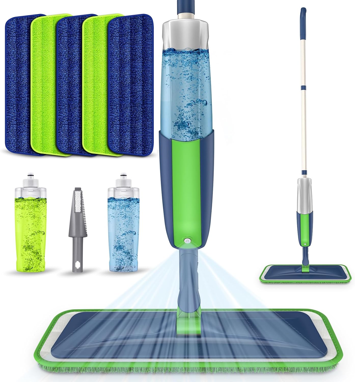 Five Replacement Mop Pads -microfiber pads pick up everything off the floor (grab dirt, dust, pet hair, crumbs & moisture) & leave things looking very nice. So very easy to use good mop to have. spray mop can quick spills on the floor or anywhere in your home that you may need it.5 pcs mop pads are machine washable, when you are done cleaning work, you don't have to throw them away. you can throw them in the wash & then you have another one ready for next time.