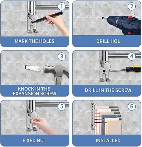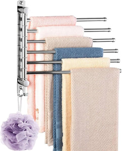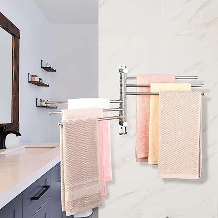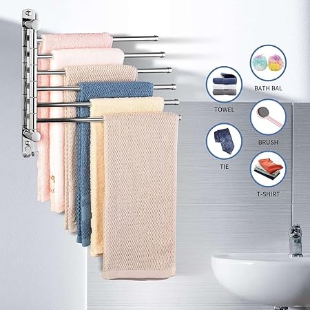 【SPACE SAVING】This space saver towel bar is Great a must for any small bathroom as instead of taking up space, it gives you more. Multiple swivel arms can be spread out when your needed, and can also swivel them back against the wall to save space, can hold Towel, bath towel, bath ball, brush, tie, hat, clothes