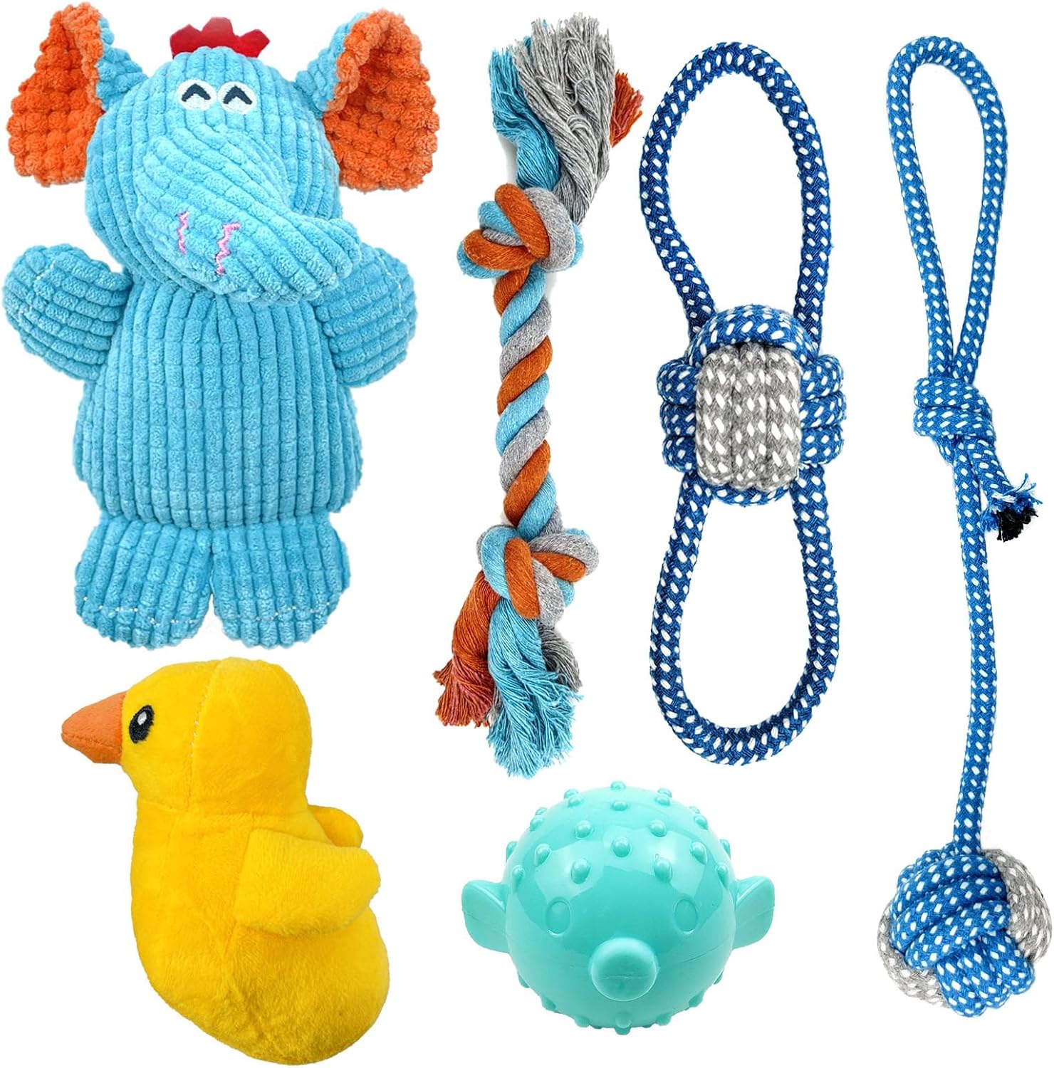 Spark Interest: The adorable elephant plush and pufferfish squeak ball are designed to captivate your puppy's attention, encouraging active play and exploration.