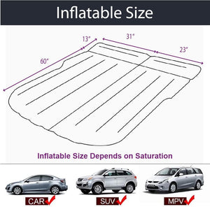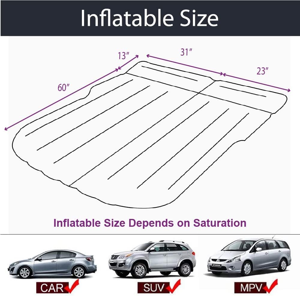 - Car Inflatable Mattress Wide Usage: children, adults or pet, sleep on this car air bed very safely, comfortable and enjoy relaxed time on trip.The inflatable air bed are suitable for most car models, Saloon car, SUV, MPV, except for the Lengthen Lincolns, Trucks and minibusIt fits for indoor,swimming,camping,travel,surf-trips,adventures,hiking,beach chair.give your children and family a warm and safe harbor.