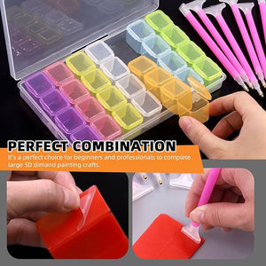 🌈[Package Information] You’ll get 23pcs DIY diamond painting tools kit, including 4pcs diamond painting pens, 1pc 28-grid storage box, 1pc diamond painting roller, 10pcs glue clay, 2 sheets stickers(24pcs per sheet), 1pc tweezer, 3pcs diamond trays and 1pc zipper bag for easy storage and carrying.
