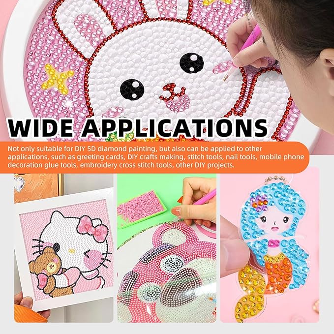 🌈[Easy to Use] The 5d diamond painting tools are easy to use. Simply put the diamonds into the diamond tray and gently shake to make the diamonds arranged in a row. Then, put press the painting pen on the glue clay, you can use the pen to stick the diamond and paste it in the place where you want.