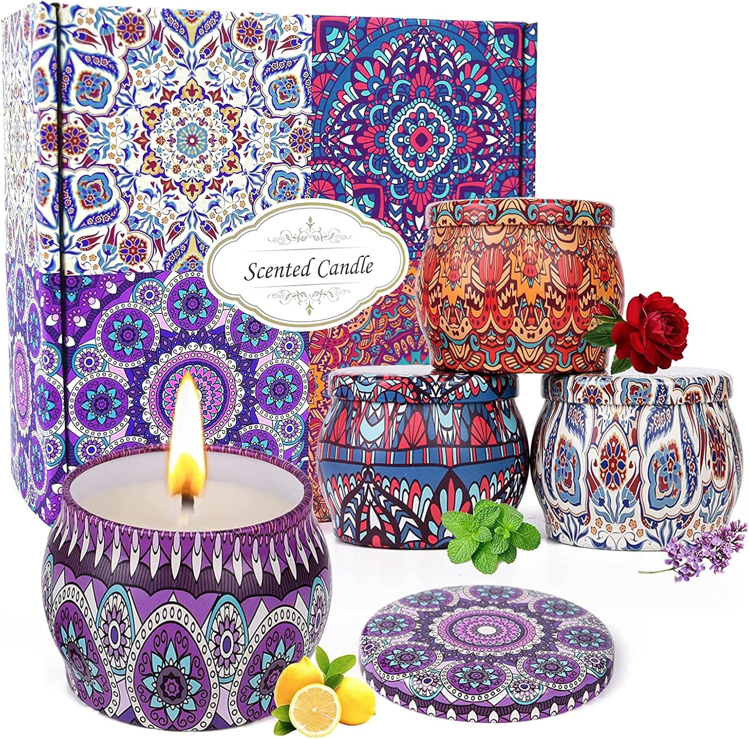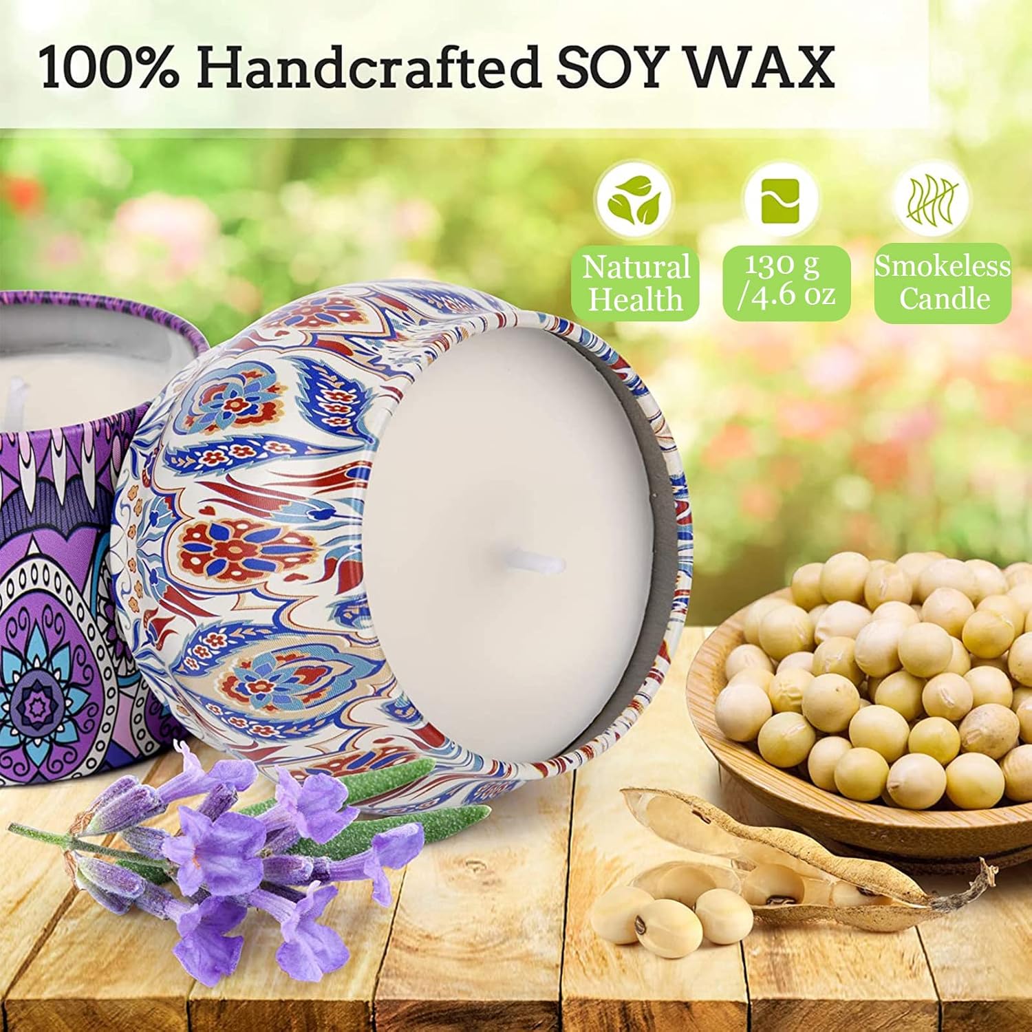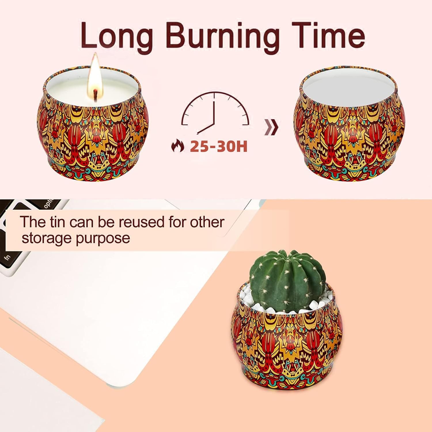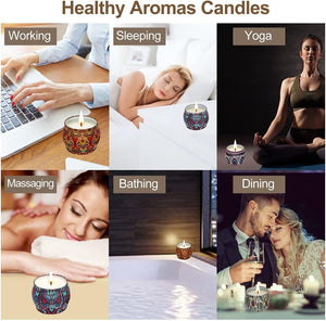 🌷【100% Natural Soy Wax】Aromatherapy Candle are made from pure soy wax with essential oil, 100% organic and environmentally friendly. The small candles in decorative candles containers is portable and easy to travel. And you can keep the metal candle tins to decorative your home or use as a great storage container for some small items when the candles burn out.