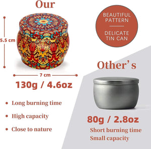 ⏰【Candle Long Lasting】Soy wax content 130 g/4.6 oz per each, 25 to 30 hours long lasting time. A total combustion of 100 hours, and the wick is made of natural fiber, strong and durable, full of fragrance.
