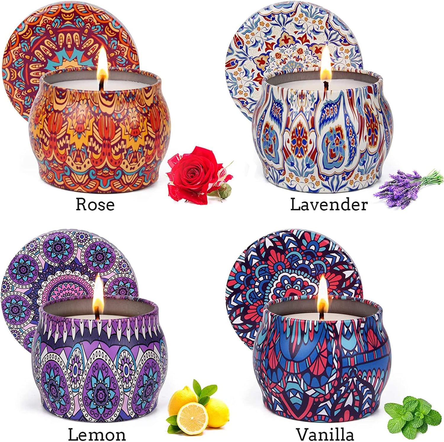 🕯️【4 Fragrances Scented Candles】4 different fragrances, including Lemon, Rose, Vanilla, Lavender. It can fresh the air and relax your body, ideal for yoga, bath, date, Honeymoon and office. It is the perfect gift for Mother's Day & Christmas.