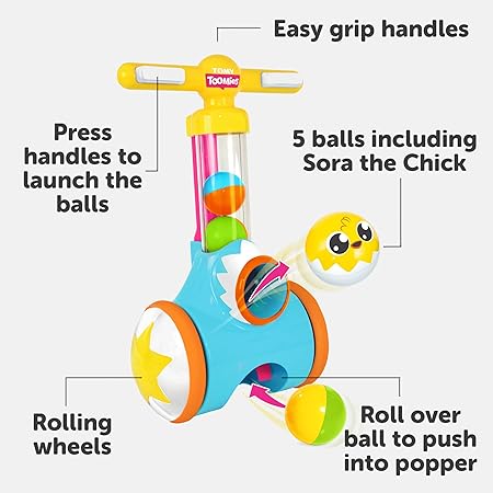 FUN TOY FOR KIDS: Squeeze the button on the handlebars to pop the balls out