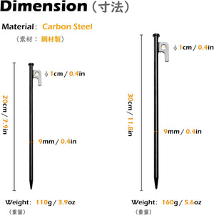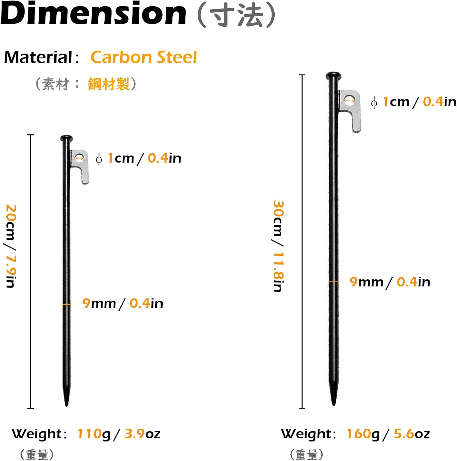 ✅ SPECIFICATION -- 30 cm/12 in long peg Φ is about 0.4”, weight 160 g; 20 cm/8 in long peg Φ is about 0.3”, weight 110g