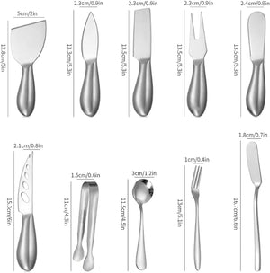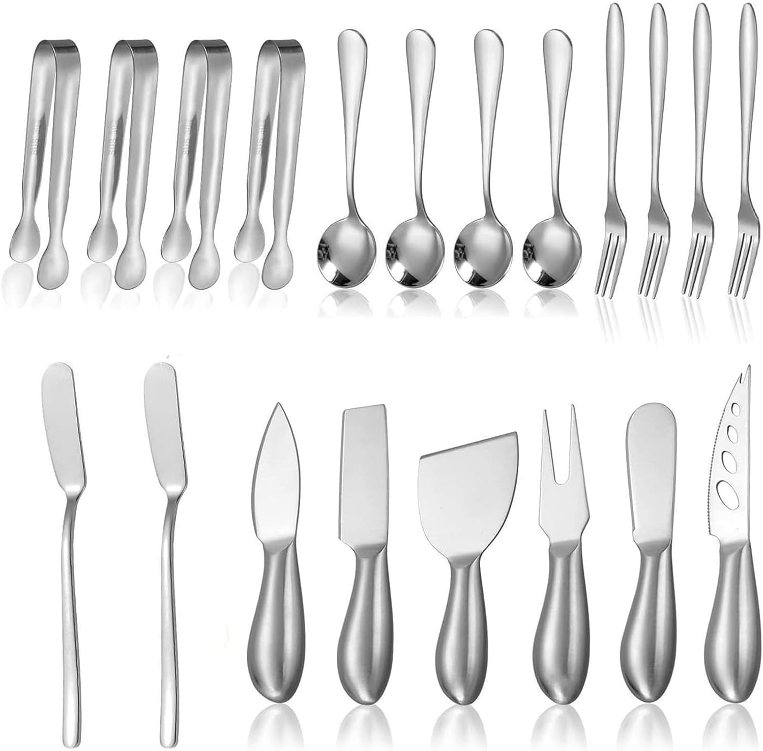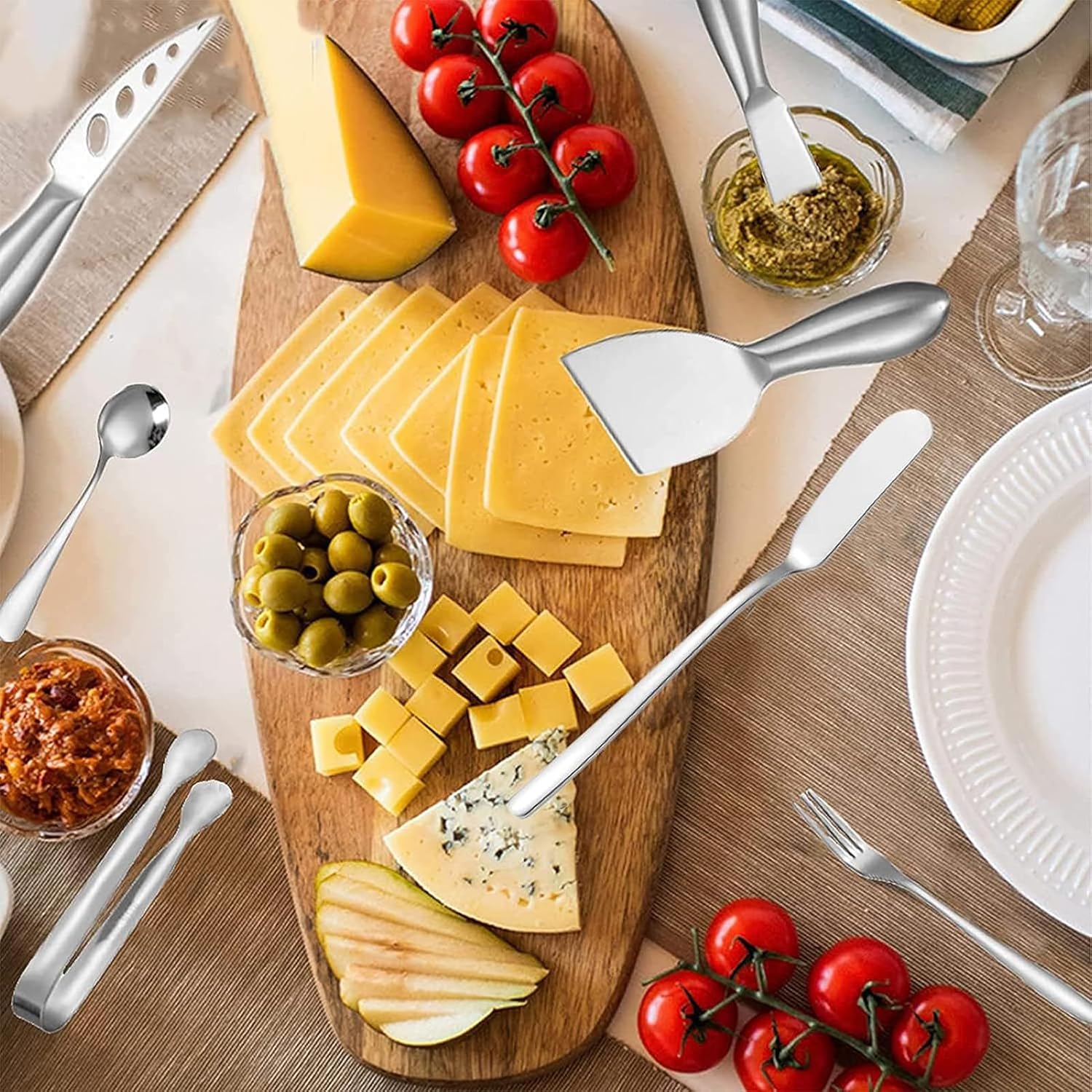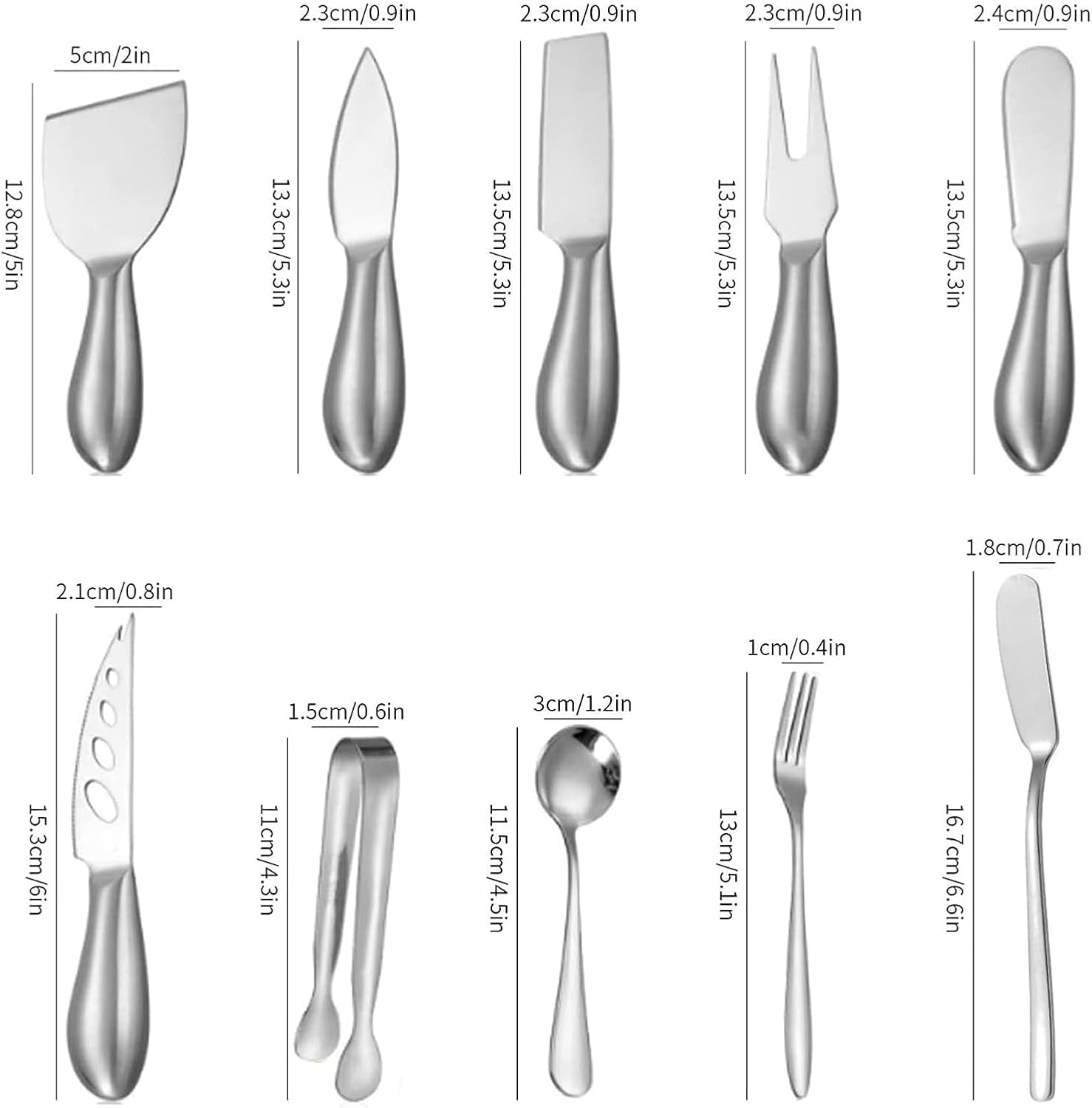 【WIDELY USED】What the cheese knives can offer you is that is easy for you to cut the cheese and apply the cream to the cake in daily use. Small spoons, forks, and tongs can be used for coffee, desserts, yogurt, ice cream, appetizers, sauces, condiments, sugar and more, making it a versatile charcuterie board accessories kitchen tool for you.