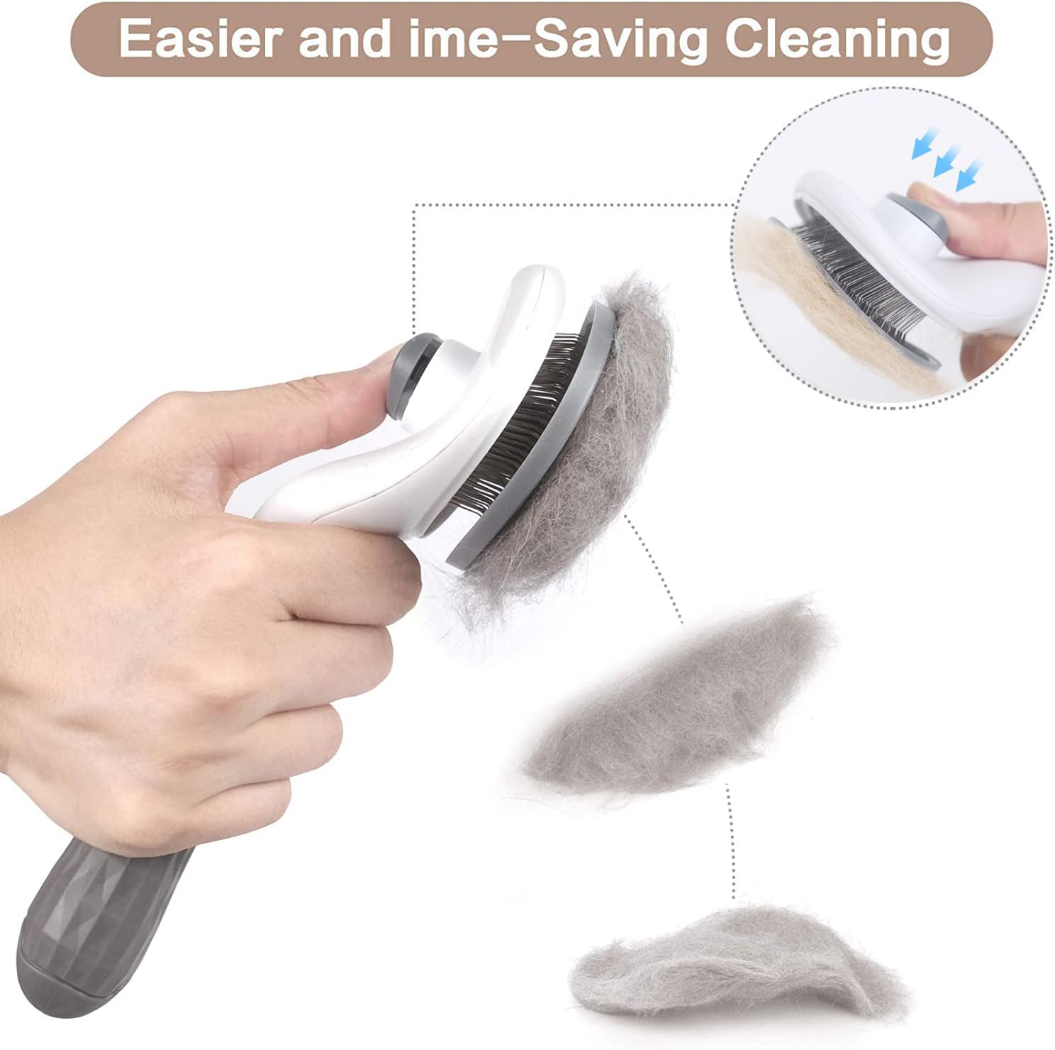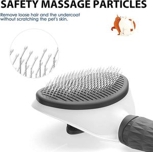 EASY TO CLEAN: one-click cleaning button. All you have to do is press the clean button to retract the bristles and wipe hairs away. and the hair will be removed from the brush super easily. And our pet brush is washable, which can keep the brush hygienic.