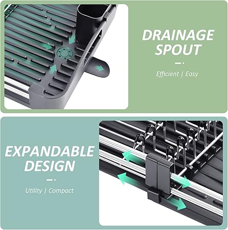 EXPANDABLE DESIGN: Thanks to the smart expendable design,you can extend it to hold more items or fold it to save the space. It's perfect suitable for different kitchen countertop space.