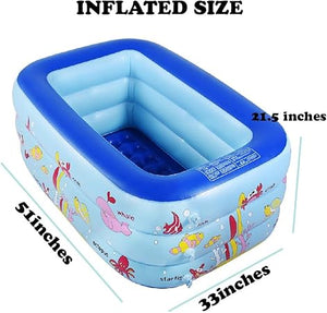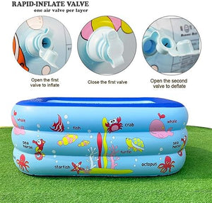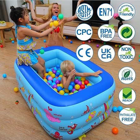 Fun for adults and kids: The inflatable pool is perfect for adults and kids to play with. It is an ideal choice for kids to enjoy indoors and outdoors. With a lovely ocean world design, the swimming pool can make kids taught in entertainment.