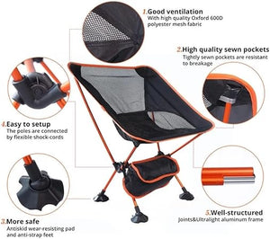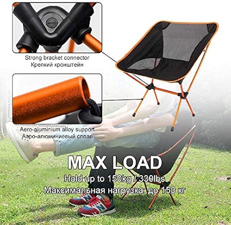 Load capacity: Seat of compact camp chair this made of 600D Oxford cloth with high-strength aluminum alloy frame. Our heavy duty camping chair weighs only 0.95kg which can hold up to 140kg. This heavy duty chair is a must-have for campers, hikers, backpackers, adventurers and people who like outdoor activities